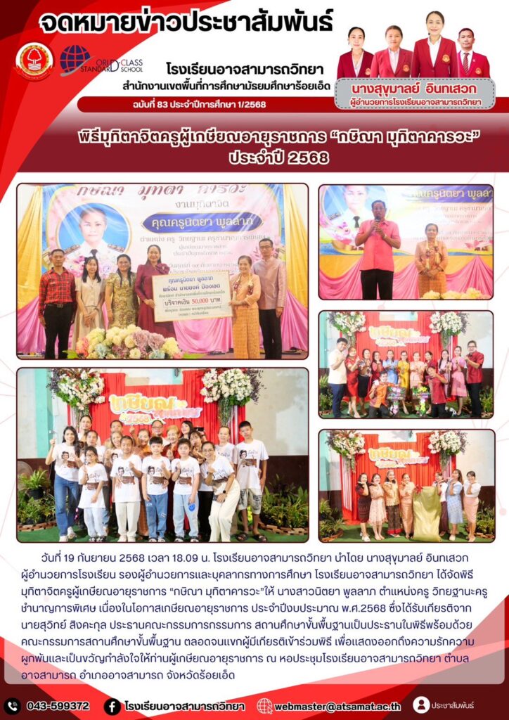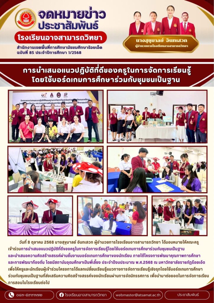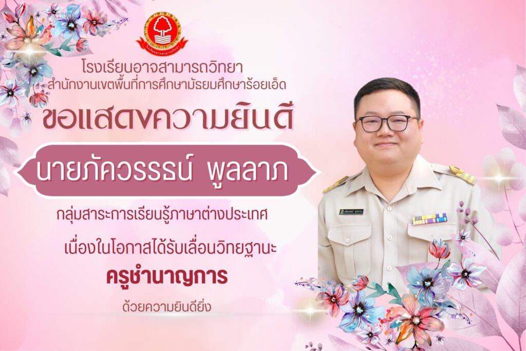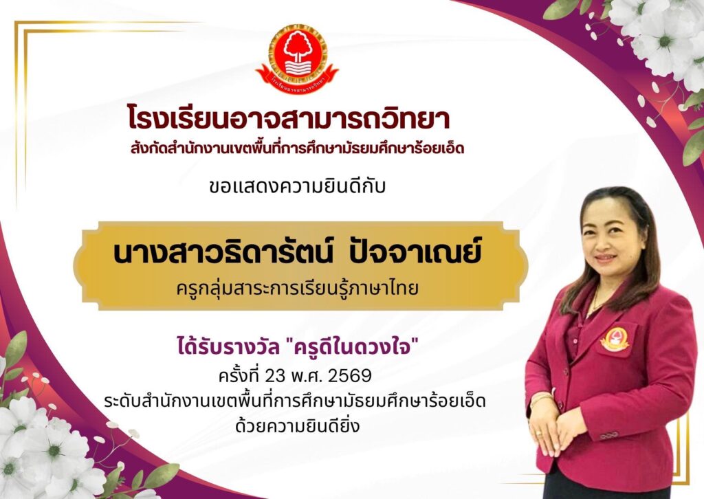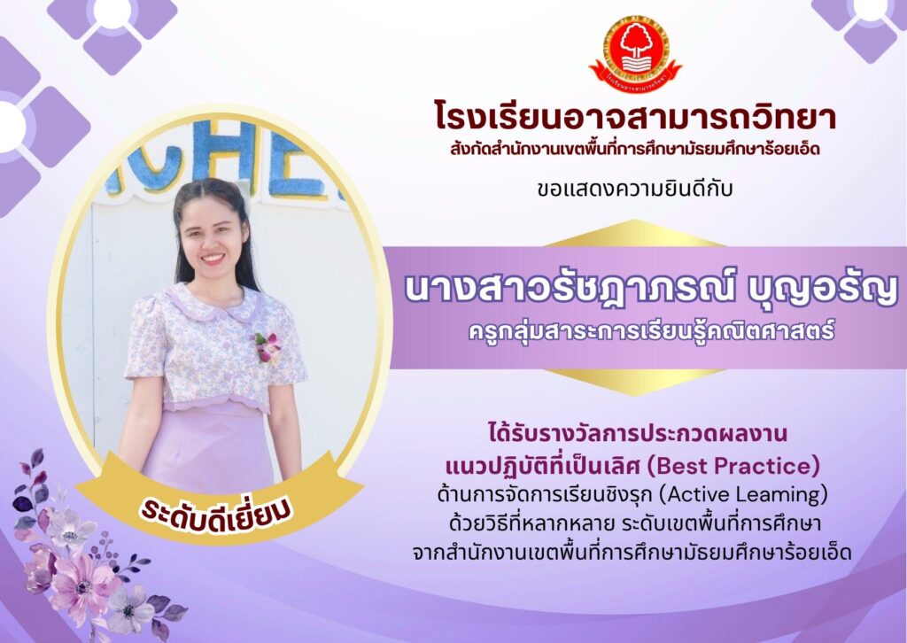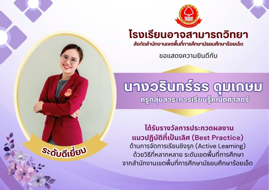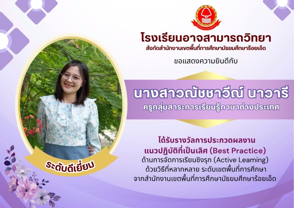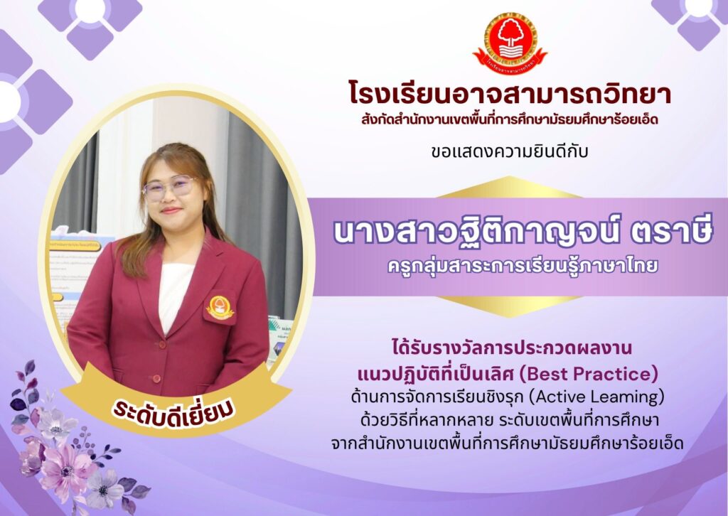 ขอแสดงความยินดีบุคลากรโรงเรียนอาจสามารถวิทยา ได้รับรางวัลประกวดผลงาน Best Practice