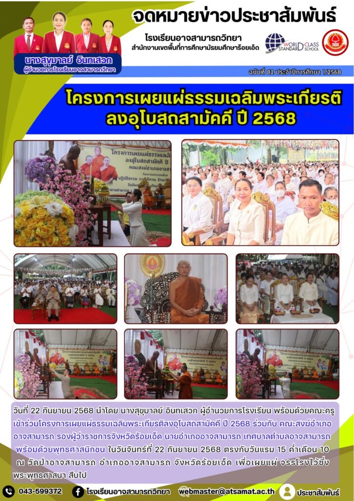 กิจกรรมอบรมให้ความรู้แก่นักเรียนในระดับชั้นมัธยมศึกษาปีที่ 1 ถึง ชั้นมัธยมศึกษาปีที่ 6 เพื่อเสริมสร้างความตระหนักรู้เกี่ยวกับพิษภัยของบุหรี่ไฟฟ้าโดยได้รับความร่วมมือจากสถานีตำรวจภูธรอำเภออาจสามารถ ร้อยตำรวจเอกบัญชา ไชยสวัสดิ์ รองสารวัตรป้องกันปราบปราม