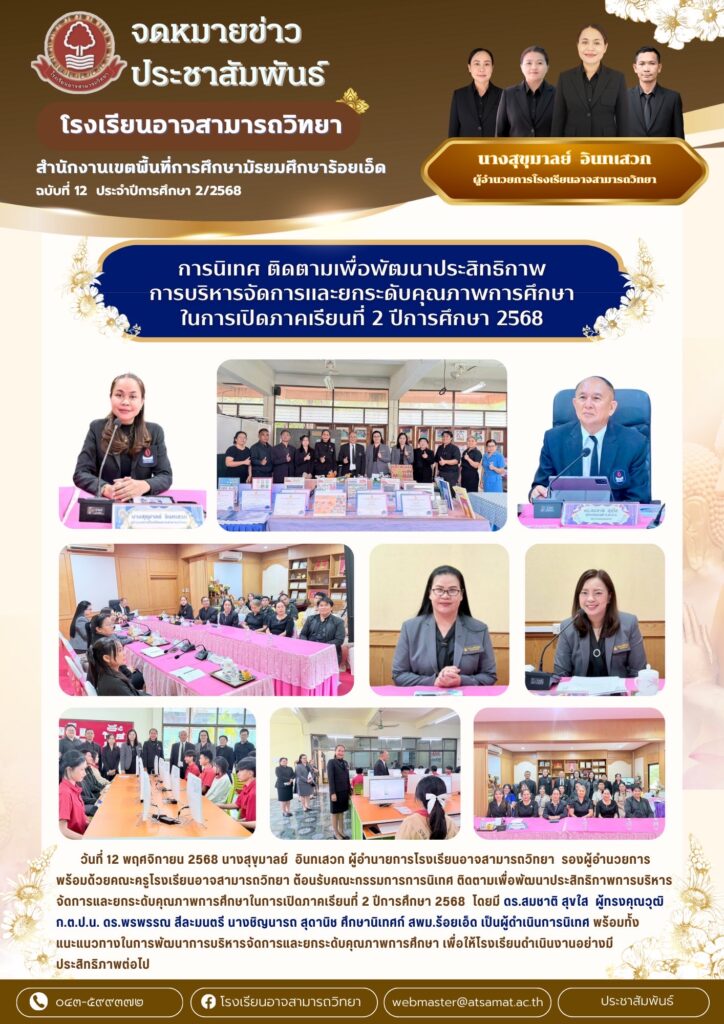 คณะครูและบุคลากรทางการศึกษา ได้เดินทางไปร่วมแสดงความยินดี นายธชย ธาระปราบ รองผู้อำนวยการโรงเรียนอาจสามารถวิทยาเนื่องในโอกาสได้รับการแต่งตั้งให้ดำรงตำแหน่ง ผู้อำนวยการโรงเรียนบ้านโนนโพธิ์ สังกัดสำนักงานเขตพื้นที่การศึกษาประถมศึกษาร้อยเอ็ด เขต 3
