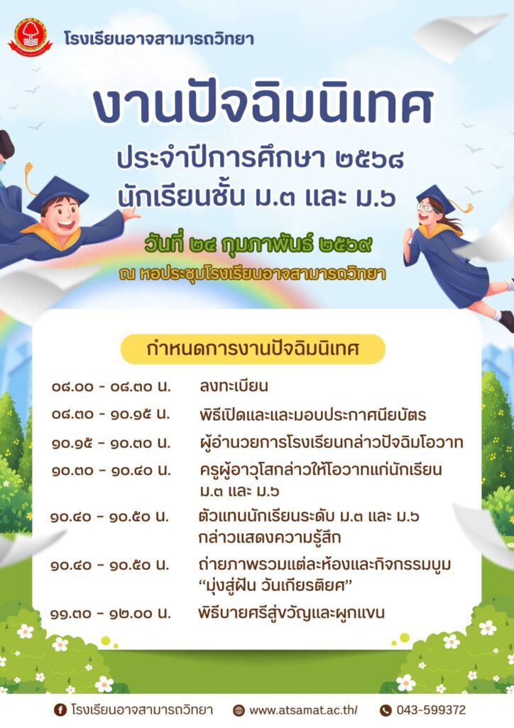 | 6 เมษายน 2568 | ประกาศผลการสอบเข้าศึกษาต่อะดับมัยมศึกษาปีที่ 4 ปีการศึกษา 2568 ห้องเรียนปกติ และห้องเรียนพิเศษ |