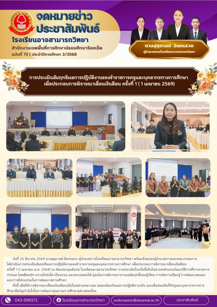 การประเมินผลปฏิบัติงานตามข้อตกลงในการพัฒนางาน (Performance Agreement PA) ของข้าราชการครูและบุคลากรทางการศึกษา โรงเรียนอาจสามารถวิทยา ประจำปีงบประมาณ 2568