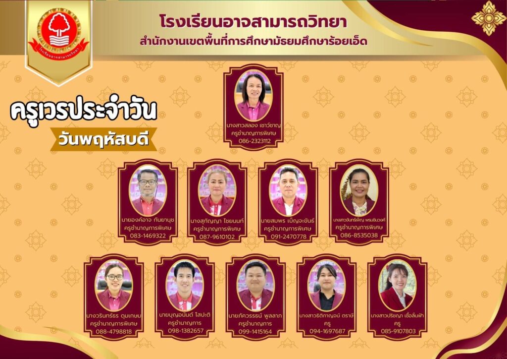 เวรประจำวัน ภาคเรียนที่ 2 ปีการศึกษา 2568