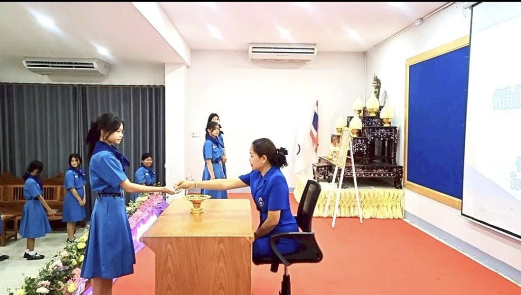 จัดพิธีเข้าประจำหมู่ยุวกาชาด. ประจำปีการศึกษา ๒๕๖๘ แสดงความคิดเห็น / กิจกรรมโรงเรียน, จดหมายข่าว / โดย: จันทร์เพ็ญ พรมชินวงศ์